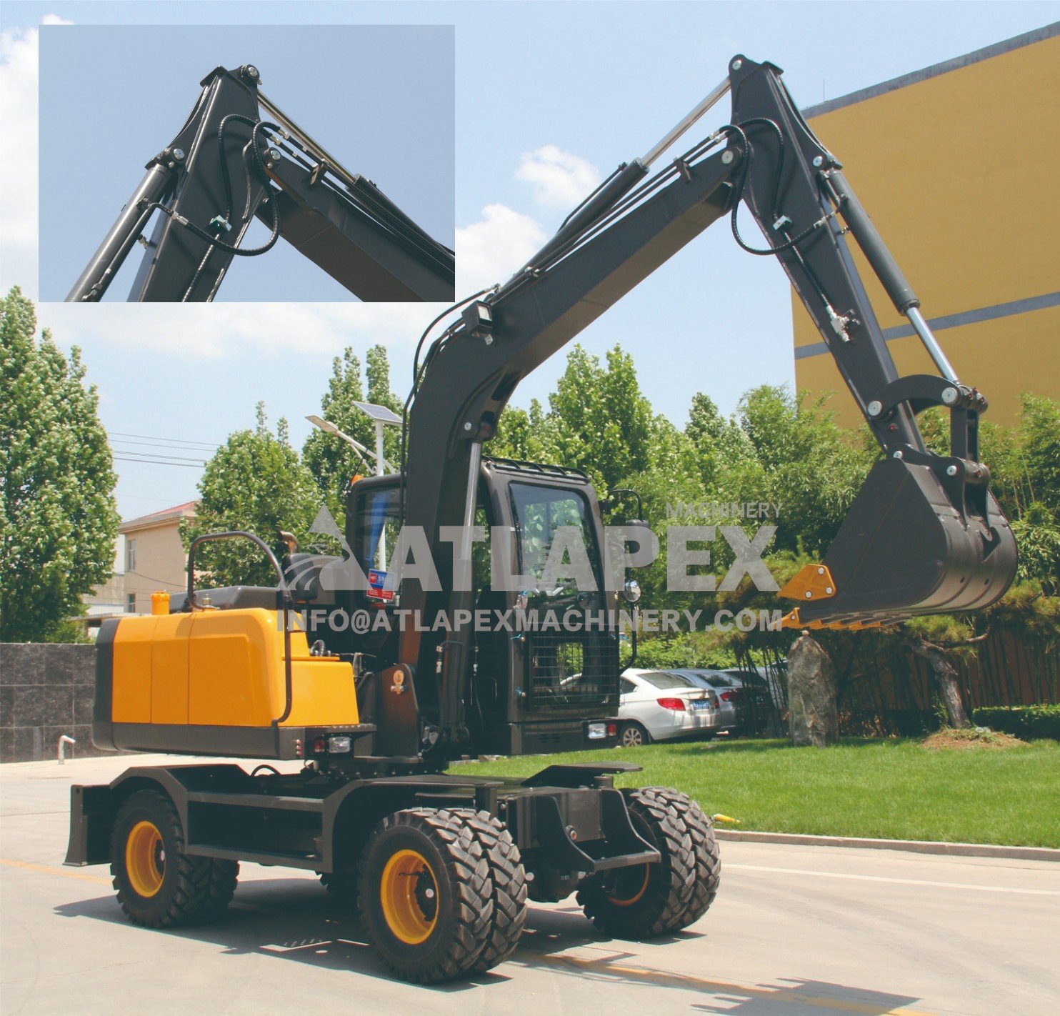 Колесный экскаватор APX75W также поставляется с рядом навесного оборудования и аксессуаров, которые еще больше расширяют его возможности. Эти инструменты, от ковшей до отбойных молотков, позволяют операторам выполнять самые разные задачи с точностью и эффективностью.