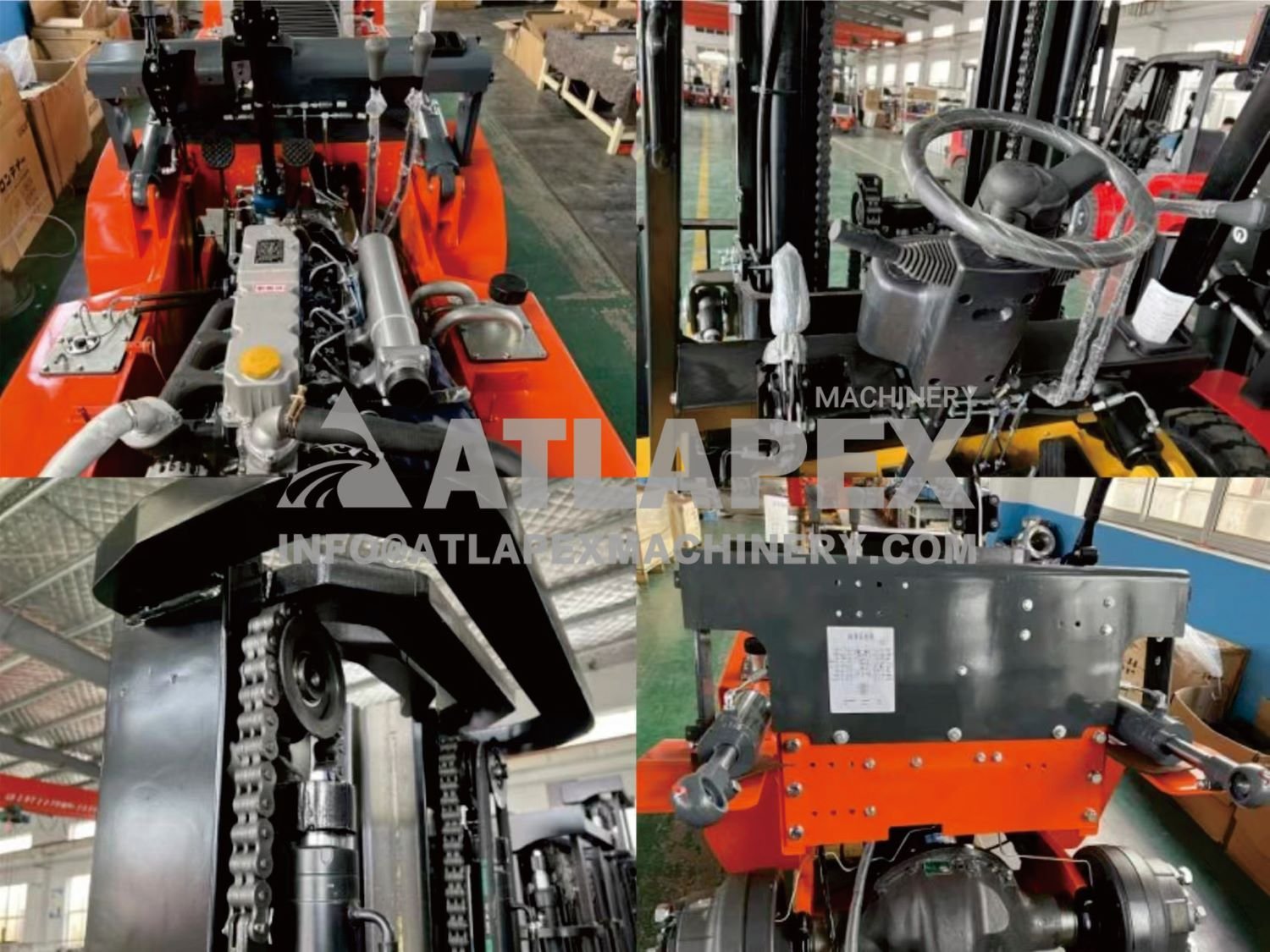 Одной из ключевых особенностей вилочных погрузчиков ATLAPEX является интегрированная конструкция буксовой коробки, которая способствует более стабильной передаче мощности. Эта инновационная конструкция помогает минимизировать вибрацию и обеспечить плавную работу, что в конечном итоге повышает общую производительность и эффективность вилочного погрузчика.