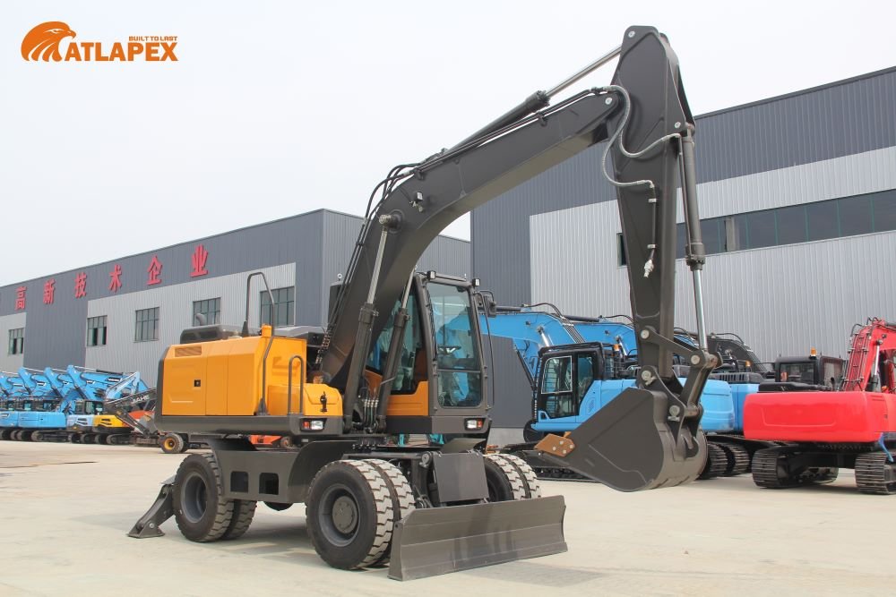 Колесные экскаваторы отличаются высокой мобильностью, способны самостоятельно передвигаться (20-40 км/ч), что делает их идеальными для городских коммунальных работ и обслуживания дорог на твердых покрытиях. Их шины не повреждают дорожное полотно, но более высокое удельное давление (1,5-3 кг/см²) ограничивает их применение на мягких грунтах без дополнительных опорных плит. Обычно их максимальная грузоподъемность не превышает 30 тонн.
