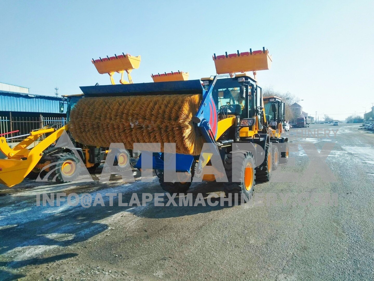 Колесный погрузчик ATLAPEX со снегоочистителем использует передовую технологию уборки и обладает мощной способностью уборки. Он быстро очищает дороги, площади и другие места ото льда и снега, легко справляется со льдом и снегом различной толщины. Использование колесного погрузчика со снегоочистителем может значительно сократить время уборки, повысить эффективность уборки, а также обеспечить плавность движения и безопасность персонала.