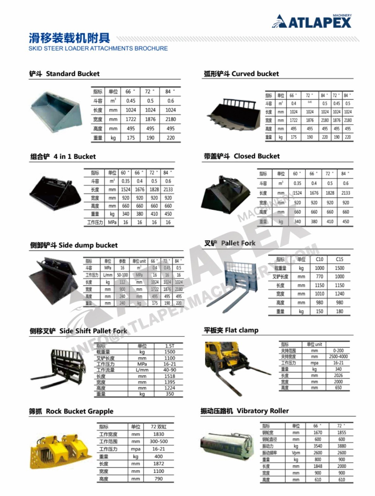 Одной из ключевых особенностей мини-погрузчиков ATLAPEX является возможность быстрого и эффективного переключения между различными навесными устройствами. Это позволяет операторам легко адаптировать машину к конкретным требованиям каждой работы, повышая производительность и сокращая время простоев. Будь то ковш для погрузки и перемещения материалов, вилочное приспособление для подъема поддонов или снегоочиститель для расчистки дорог, погрузчик с бортовым поворотом справится со всем этим.