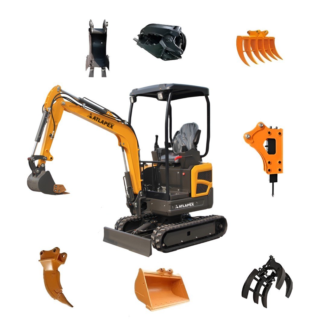 1,5-тонный гидравлический экскаватор ATLAPEX разработан для бесшовной интеграции с различными многофункциональными навесными приспособлениями. Независимо от того, нужно ли вам копать, загружать, выравнивать, рыть траншеи, ломать, бурить, прессовать или поднимать, эта машина с легкостью справится со всем этим. Его адаптивность делает его подходящим для различных секторов, включая гидроэнергетику, транспорт, муниципальные проекты, ландшафтный дизайн, преобразование сельскохозяйственных земель и строительство нефтепроводов.